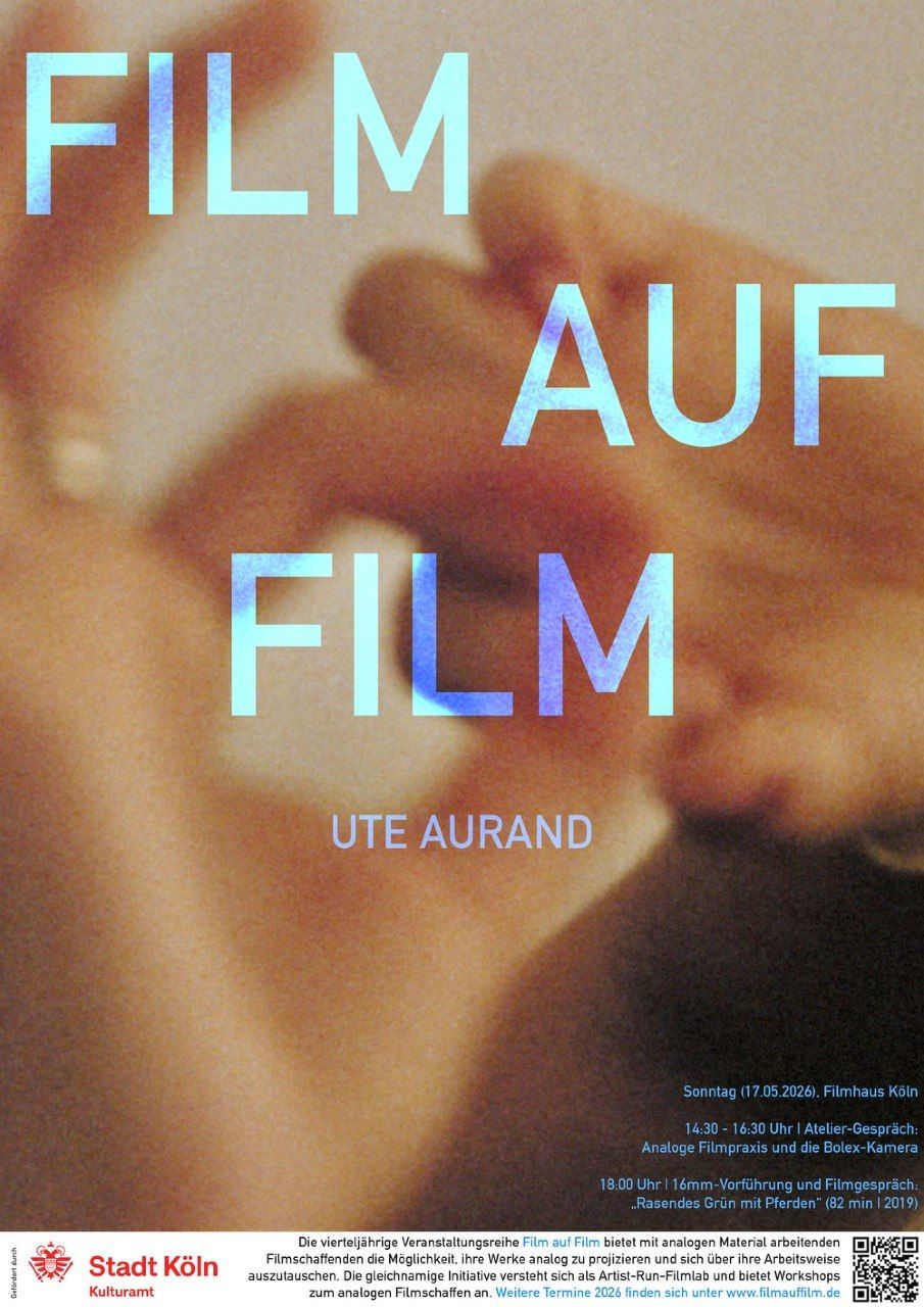 Wir freuen uns, Ute Aurand am 17. Mai in Köln begrüßen zu dürfen. In einem Ateliergespräch im Filmhaus (14:30–16:30 Uhr) gibt sie Einblicke in ihre filmische Praxis und ihre besondere Arbeitsweise mit der Bolex-Kamera. Am Abend (18:00 Uhr) präsentiert Aurand ihren Langfilm Rasendes Grün mit Pferden (82 Min., 2019) im Filmhaus Kino, gefolgt von einem Künstlerinnengespräch.