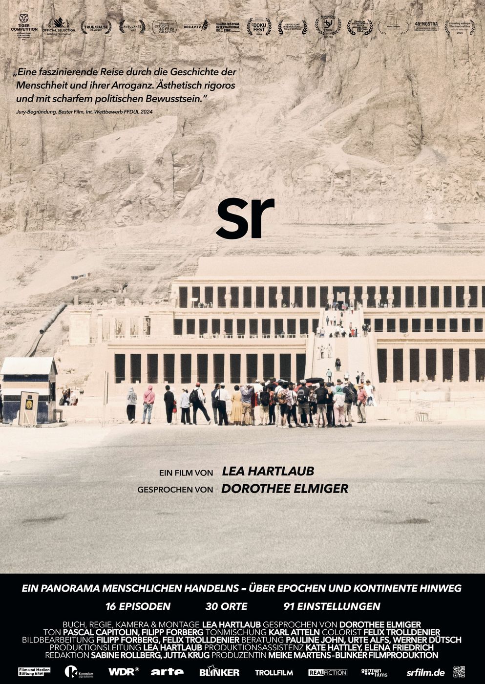 In einer puristischen Filmsprache und bühnenhaften Tableaus erzählt SR vom Menschen und von durch ihn geschaffene Wirklichkeiten. 16 fragmentarische Episoden führen in 91 Einstellungen an 30 Handlungsorte – unter anderem auf eine Insel im Westpazifik, in einen Lesesaal in New York, zu einer Keramikfabrik bei Peking, auf eine Landebahn im Niger.