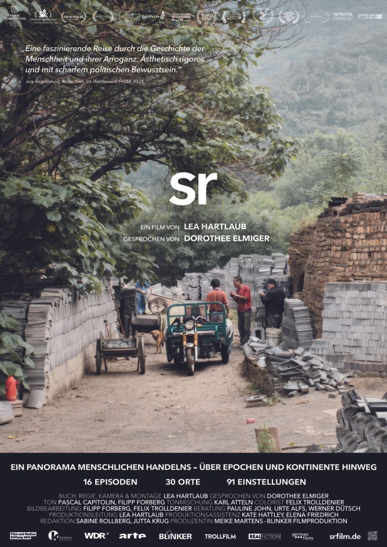 In einer puristischen Filmsprache und bühnenhaften Tableaus erzählt sr vom Menschen und von durch ihn geschaffene Wirklichkeiten. 16 fragmentarische Episoden führen in 91 Einstellungen an 30 Handlungsorte – unter anderem auf eine Insel im Westpazifik, in einen Lesesaal in New York, zu einer Keramikfabrik bei Peking, auf eine Landebahn im Niger.